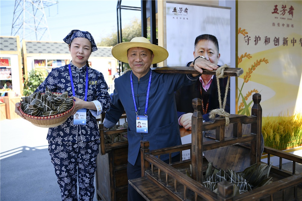 五芳齋作為長江經(jīng)濟帶參展粽子企業(yè)代表向各地紛至沓來的國家領導、媒體及參訪團展示國家級非遺-五芳齋粽子制作技藝,講述了嘉興稻米文化歷史及米制品點心的傳承與創(chuàng)新。