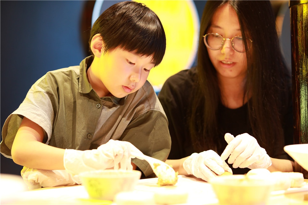 大暑節(jié)氣,宜吃鮮香軟糯之食。7月22日,五芳齋夏日品鑒會(huì)暨中華節(jié)令美食體驗(yàn)會(huì)在月河景區(qū)的嘉湖細(xì)點(diǎn)舉行,吳峻老師耐心講解鮮肉月餅制作流程,小朋友們手帶手套,認(rèn)真聆聽,并在家長協(xié)助下完成月餅制作。