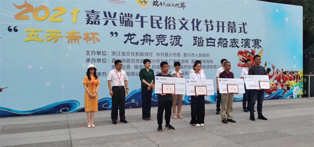 6月12日上午,由浙江省文化和旅游廳、中共嘉興市委、嘉興市人民政府共同主辦的2021嘉興端午民俗文化節(jié)開幕式暨“五芳齋杯”南湖龍舟競渡、踏白船表演賽,在改造一新的西南湖展開激情澎湃的水上角逐。