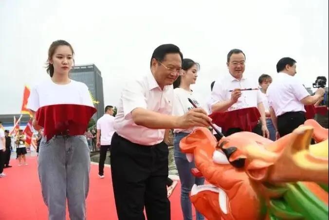 褚子育、張兵、毛宏芳、劉冬生、高玲慧、馬永良、王濤共同為龍舟點睛;祝亞偉、陳利眾、敖考權等向踏白船賽隊領隊授旗。