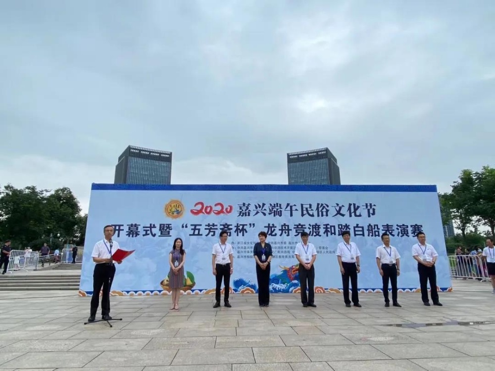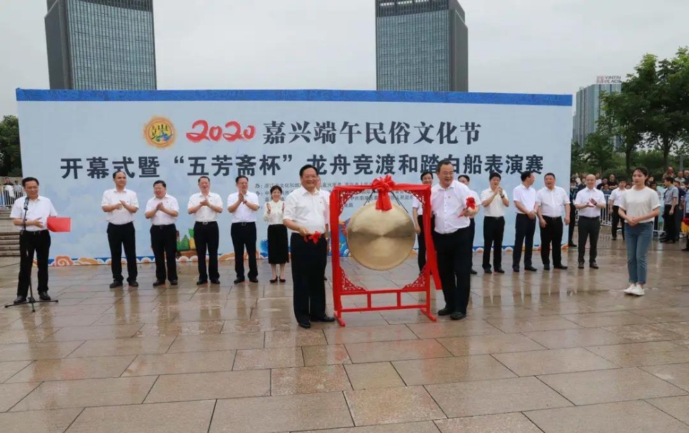 省文化和旅游廳黨組書記、廳長褚子育,市委書記張兵共同為2020嘉興端午民俗文化節(jié)鳴鑼開幕。