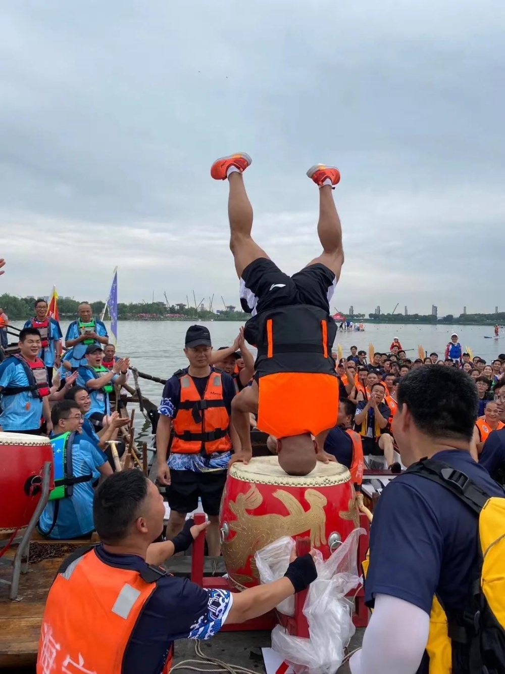 一聲令下,比賽正式開始!只聞得鼓聲陣陣,百舸爭流水花飛濺。湖中龍舟競渡、熱火朝天,隊員們同舟共濟、躍浪爭先。