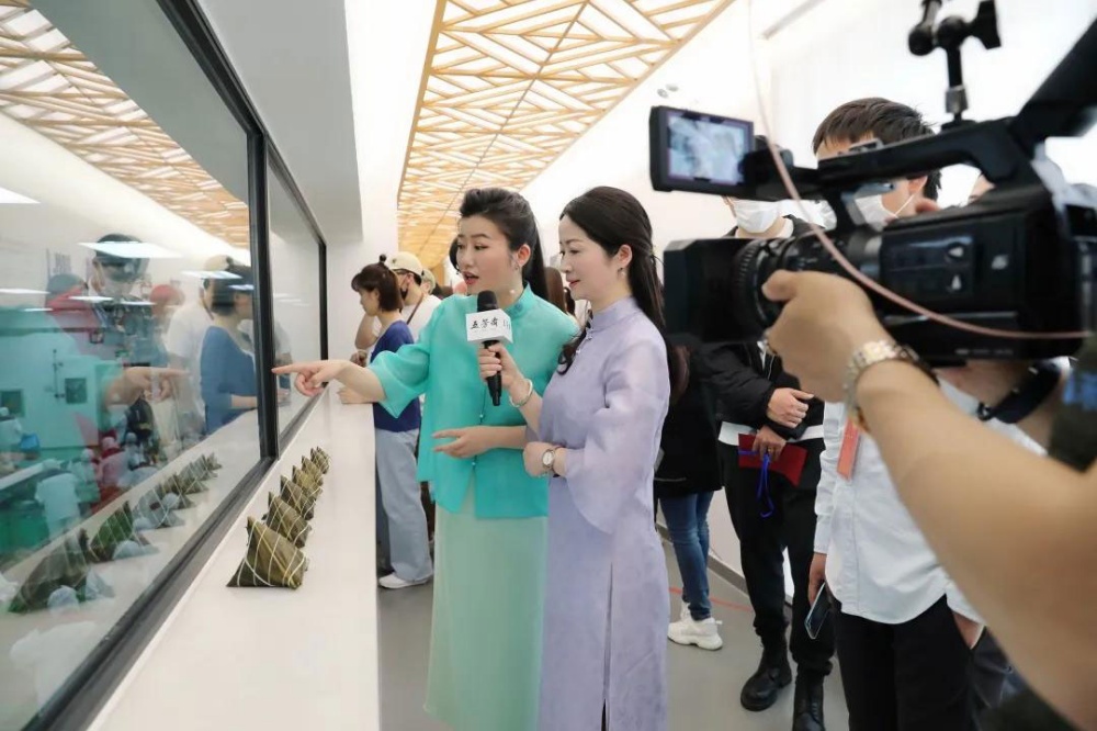 浙江五芳齋實(shí)業(yè)股份有限公司副總經(jīng)理徐煒帶領(lǐng)主持人和嘉賓來到粽藝長(zhǎng)廊,參觀粽子從淘米、切肉到裹粽等生產(chǎn)流程,從糯源、糯藝、糯心三個(gè)維度感受五芳齋的拳拳匠心,深入了解中國(guó)源遠(yuǎn)流長(zhǎng)的粽子文化。