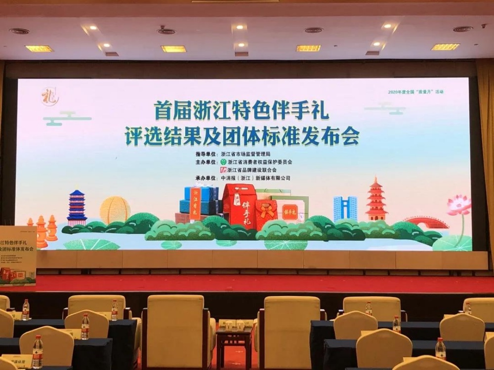 9月23日,由浙江省消費(fèi)者權(quán)益保護(hù)委員會(huì)、浙江省品牌建設(shè)聯(lián)合會(huì)聯(lián)合舉辦的首屆浙江特色伴手禮評(píng)選結(jié)果及團(tuán)體標(biāo)準(zhǔn)發(fā)布會(huì)在杭州之江飯店隆重舉行。