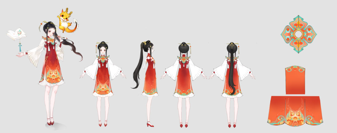 五糯糯身著一襲國風(fēng)旗袍,加入了傳統(tǒng)漢服云肩的設(shè)計,眉眼甜美可愛,裙擺上的龍紋更是暗示著她非同一般的“神秘身份”。