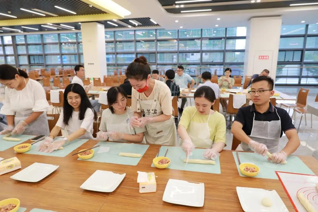 活動現(xiàn)場,五芳齋糕點師傅耐心細致地向大家講解示范月餅制作方法。大家興致高昂,拿起面團,包餡、壓模,以幸福做皮,思念為餡,把團圓的心意包裹在月餅里,將節(jié)日的祝福融入在美食中。