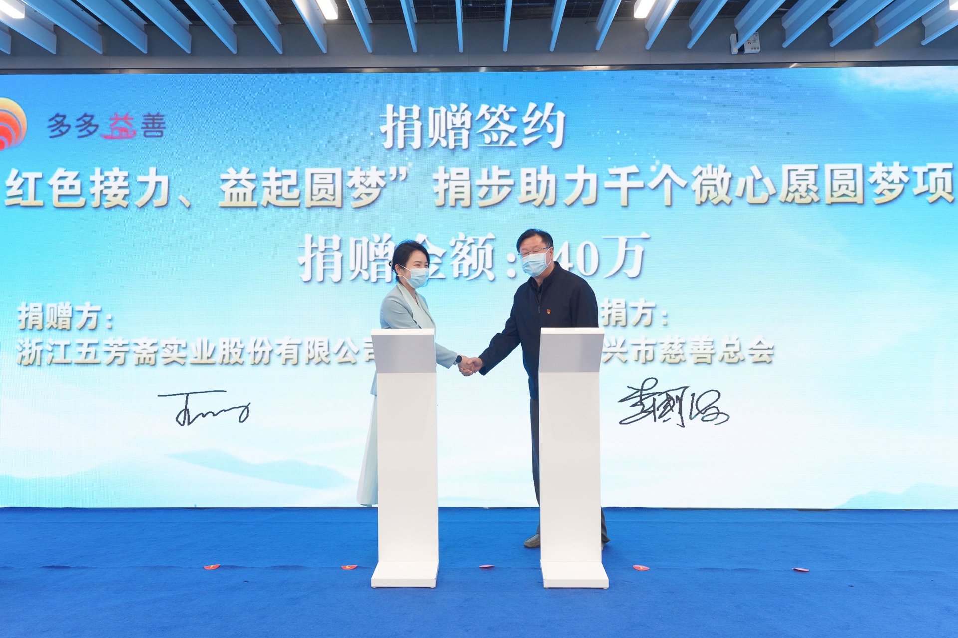 本次項(xiàng)目活動(dòng)是由嘉興市民政局、嘉興市慈善總會(huì)主辦,旨在打造“人人可慈善,人人皆慈善”良好氛圍。五芳齋作為本次活動(dòng)的愛心企業(yè),捐贈(zèng)40萬元,冠名承接起“紅色接力、益起圓夢”--慈善助力千個(gè)困難家庭學(xué)生微心愿圓夢項(xiàng)目。